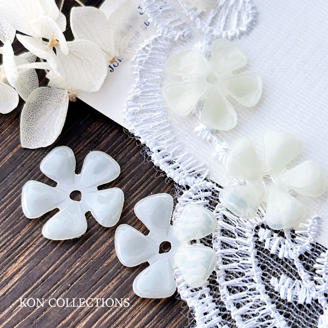 半透明のグリーン。花弁に気泡が入ったり、少しマーブルのようになっている部分がある物も含も含まれます。サイズの異なるお花との重ね使いに♪硬いタイプ。カスタムボールペン通ります。 色違いクリアー色はこちら→https://koncollect.base.shop/items/75765861 【入り数】 4個入り 【サイズ】 約14mm 【状 態】 ヴィンテージ 【材 質】 プラスチック ◇商品について ヴィンテージ品は経年による変色、サビ、小傷、フォイルのはがれ、ハンドペイントのむらなど個々の商品による個体差があります。現代物につきましても海外製品がほとんどのため、バリなどがある場合もあります。商品の色合いや質感は御覧いただく端末やブラウザにより少し異なります。イメージ違いでの返品は受け付けておりませんので、ご理解ご納得のうえご購入をお願いいたします。 ◇梱包について 複数商品をご注文いただきました場合は、同じ材質の物はまとめてOPP袋に入れさせていただく事があります(完全個包装ではありません)。 ◇領収書および納品書について 領収書は発行していません。また、納品書も同封していませんので、お手数ですがご自身にてご確認をお願いいたします。