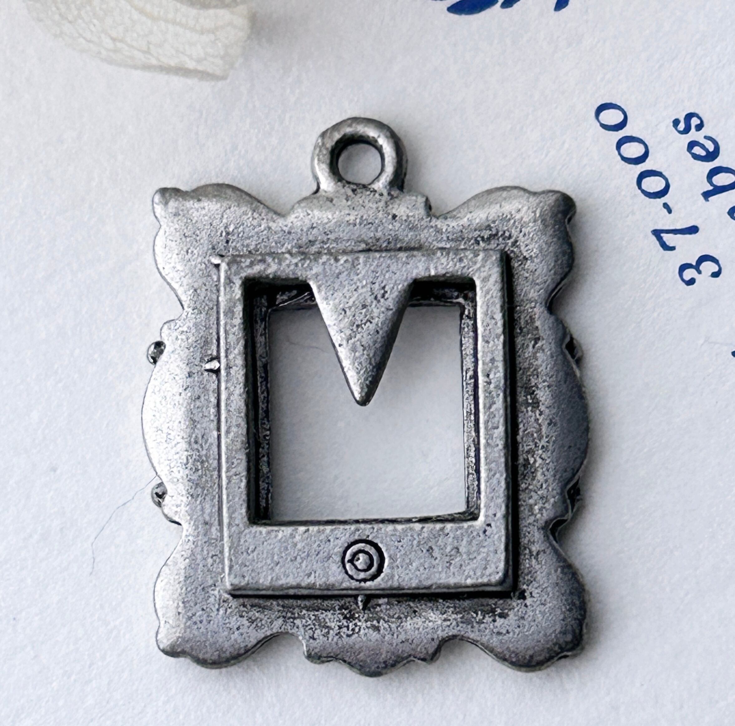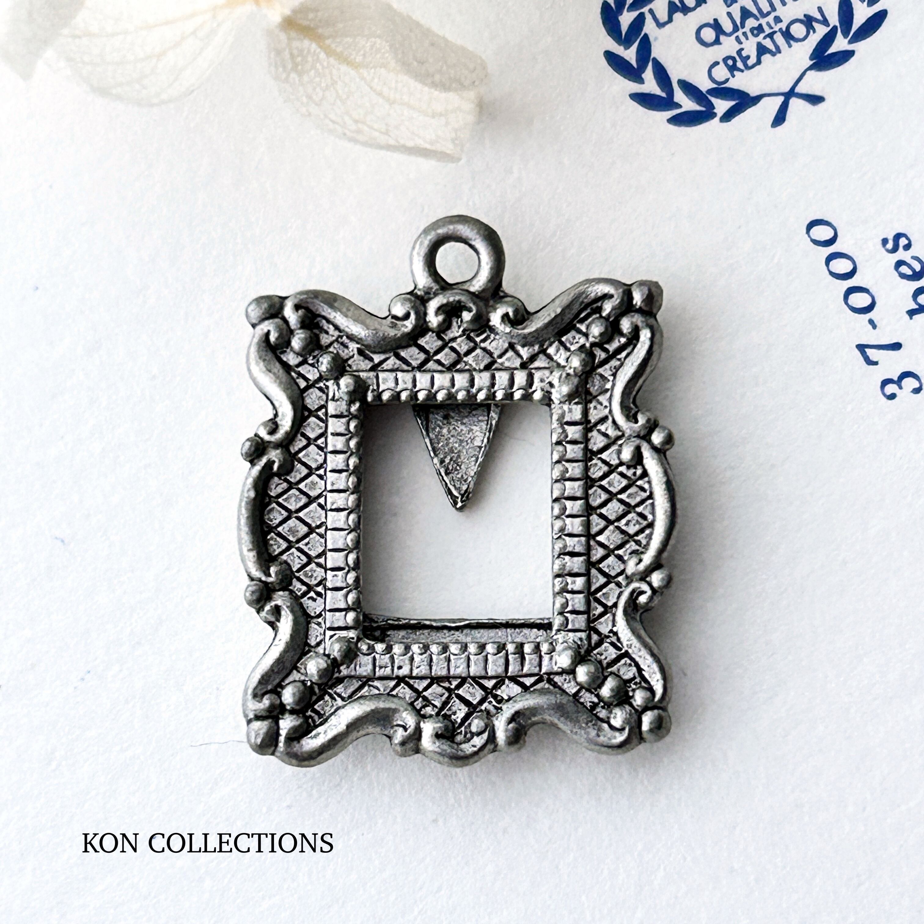 ピューターチャーム1個/額縁フレーム×アンティークシルバー