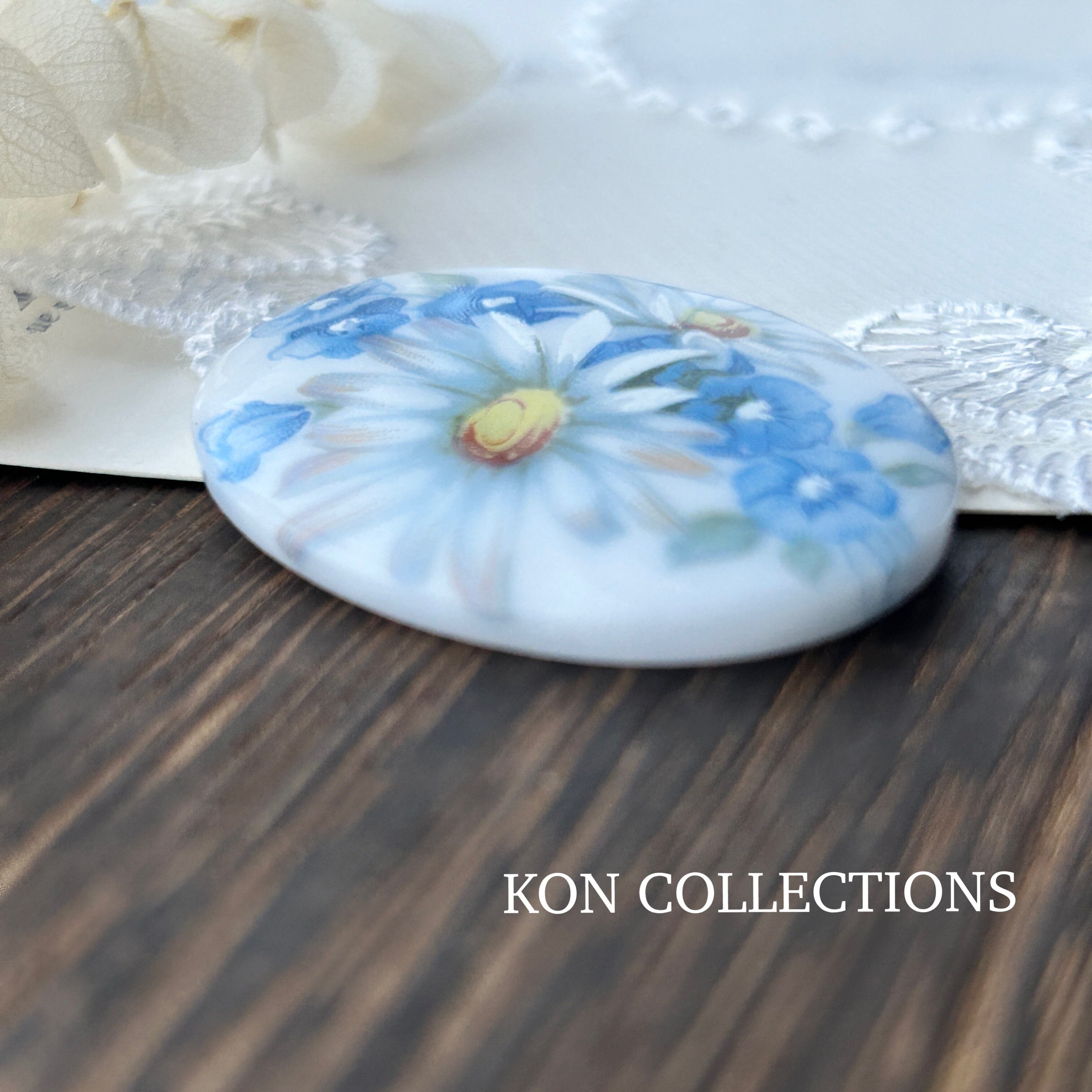 アウトレット/ヴィンテージガラスカボション1個(裏面に難あり)/デイジー/40×30