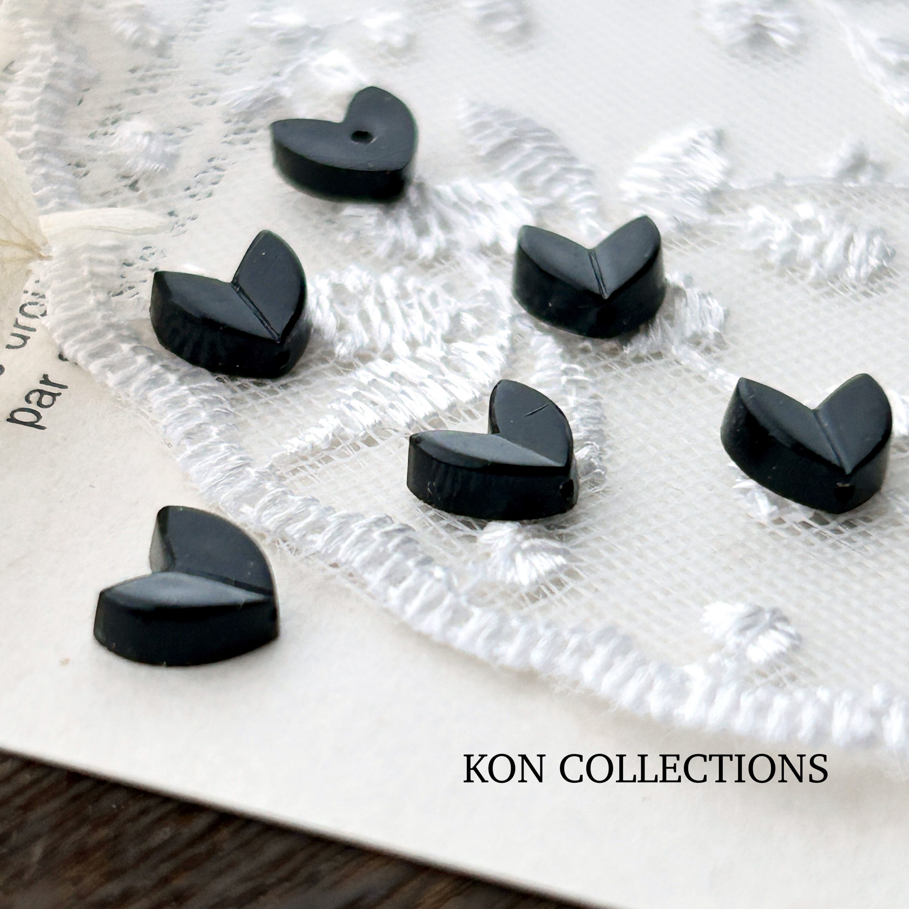 小さな小さなハート型カボション。真ん中線があり、真ん中に向かって角度がついています。少しバリ、小傷がある物も含まれます。