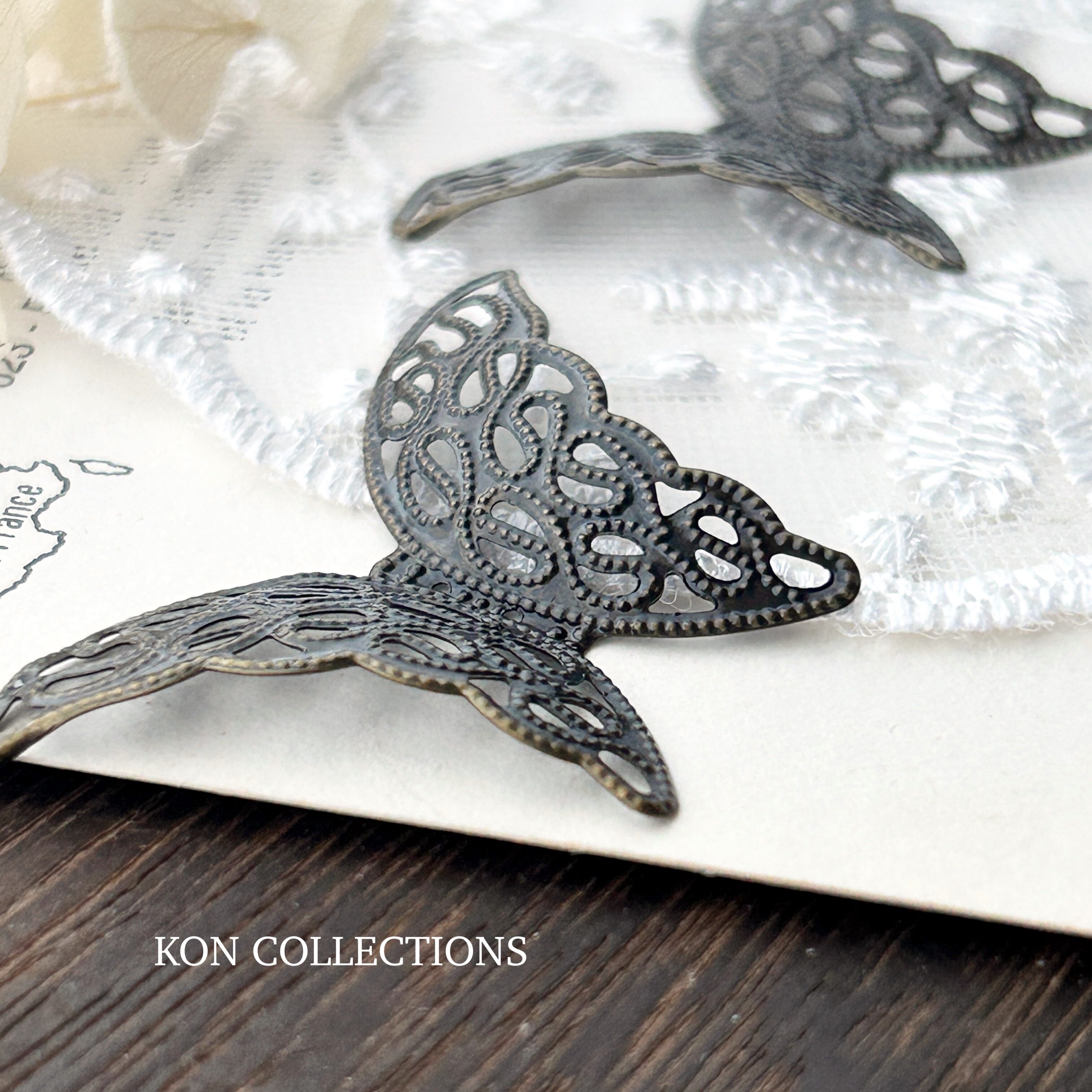 大きな蝶の透かしパーツ。ビーズを編み込んだり、ストーンをつけたりしてアレンジしても♪色の濃さと艶に個体差があります。