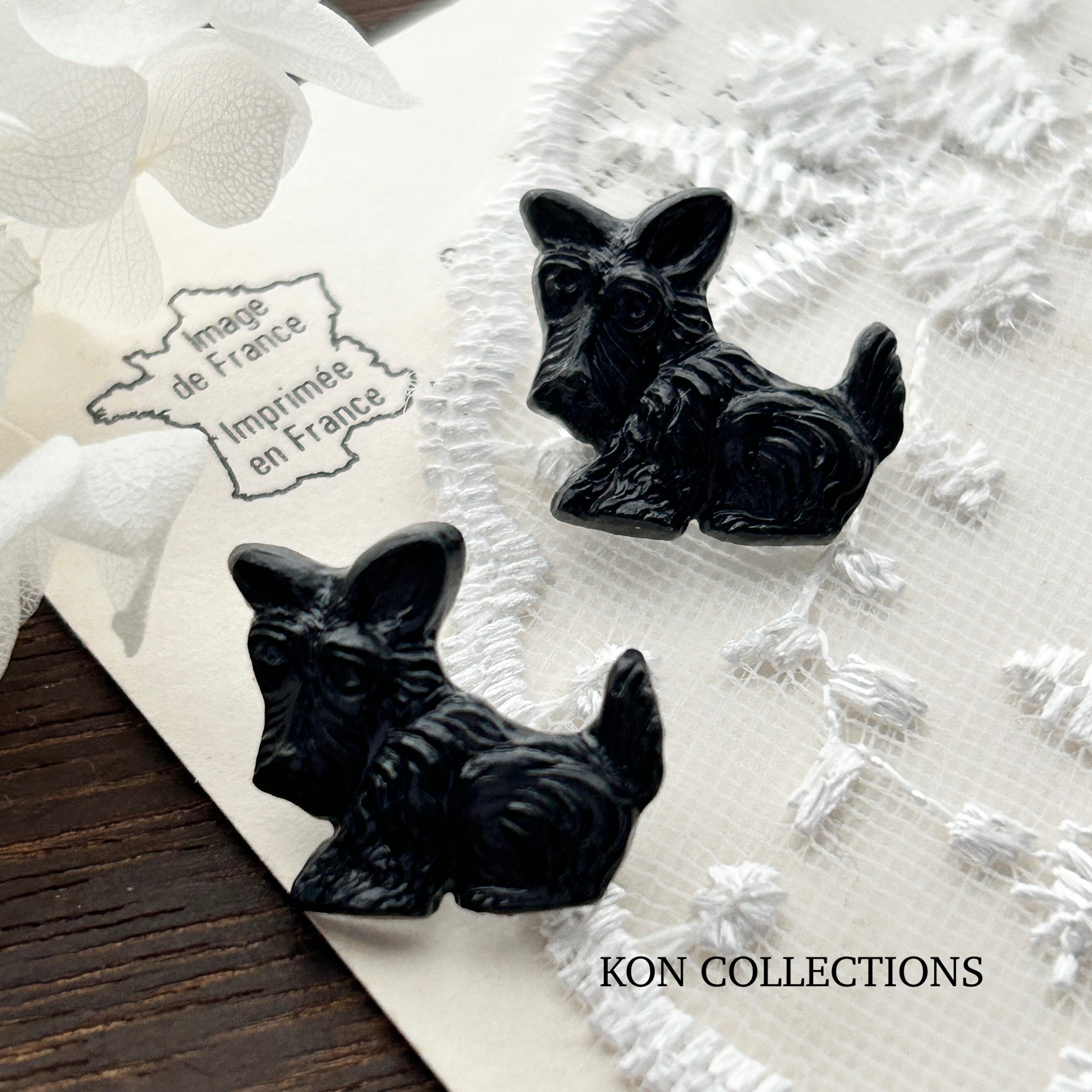 ヴィンテージボタン1個/スコティッシュテリア×ブラック