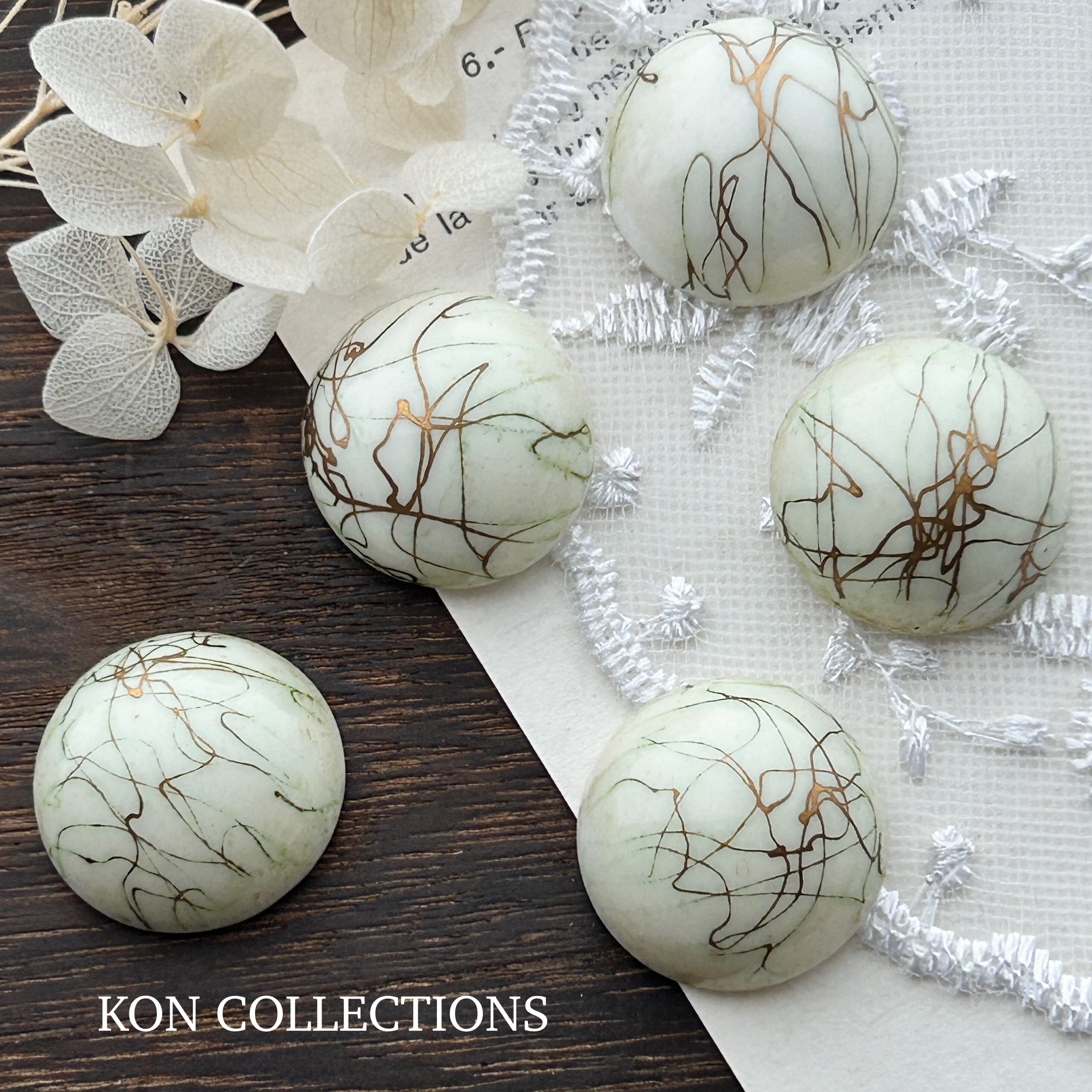 ヴィンテージガラスカボション1個/アイボリー×ゴールドライン×ラウンド