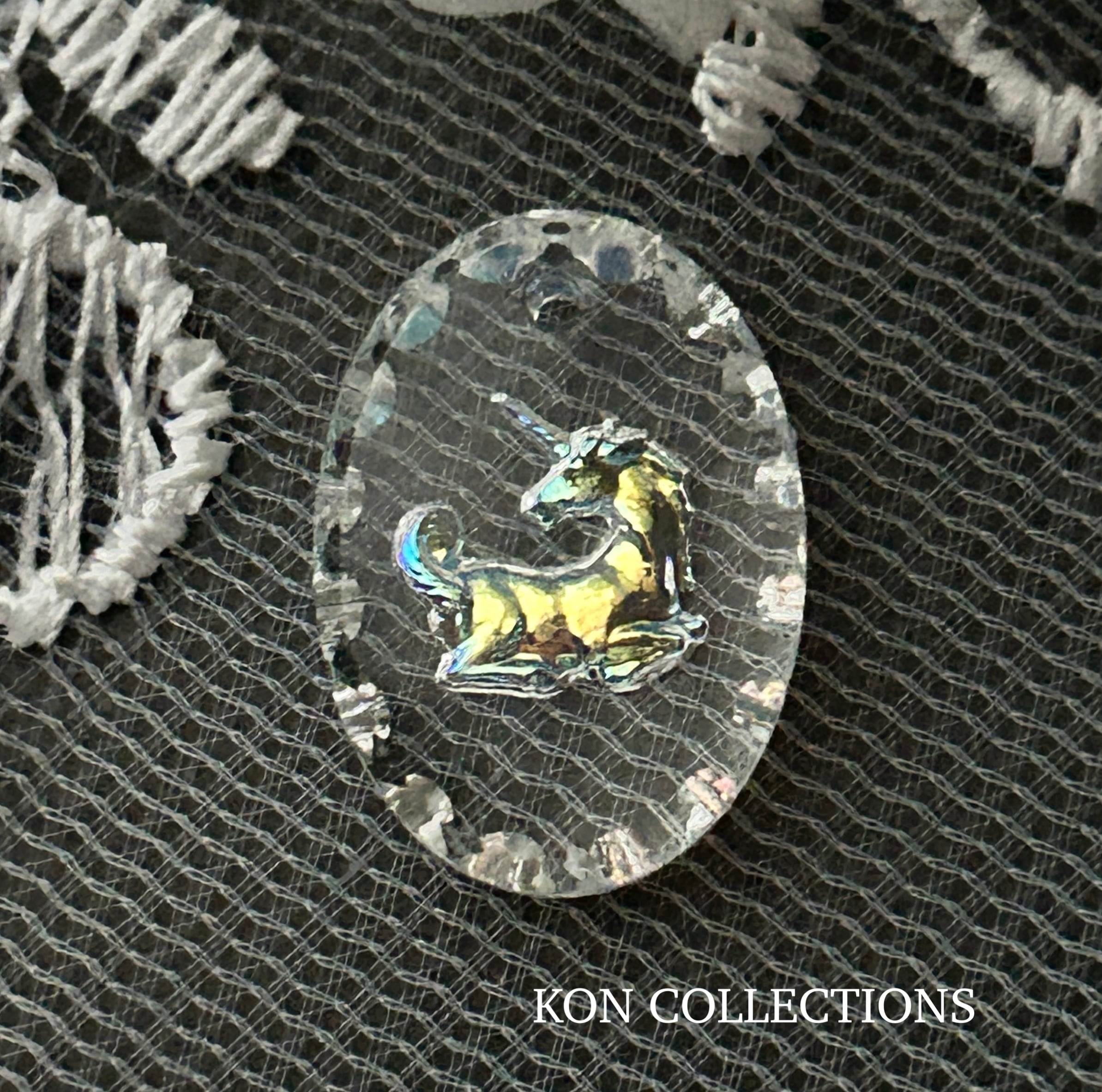 ヴィンテージガラスインタリオペンダントトップ1個/ユニコーン×クリアオーロラ×オーバル/18×13