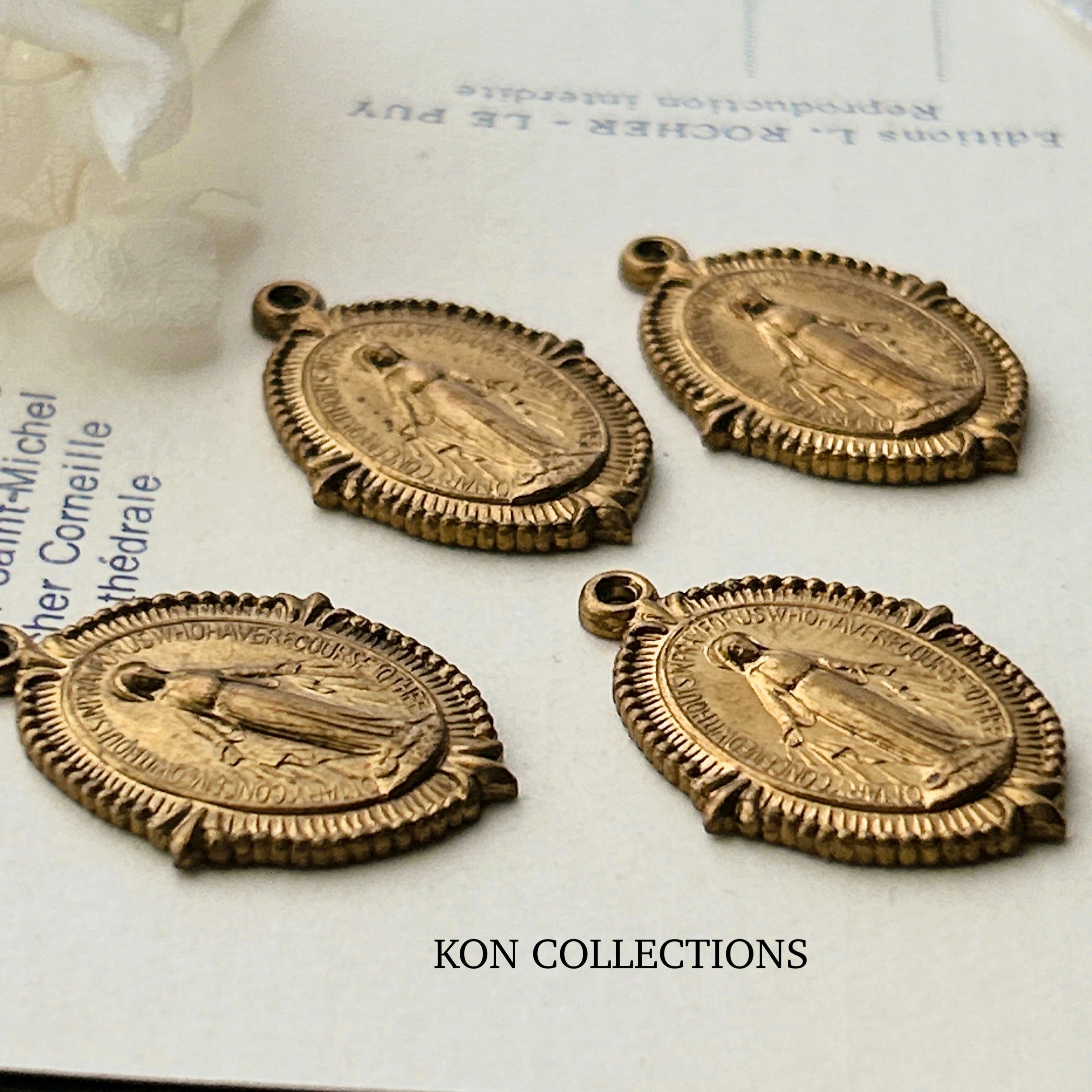 ヴィンテージチャーム1個/不思議のメダイ/ロザリオセンター/マットゴールド