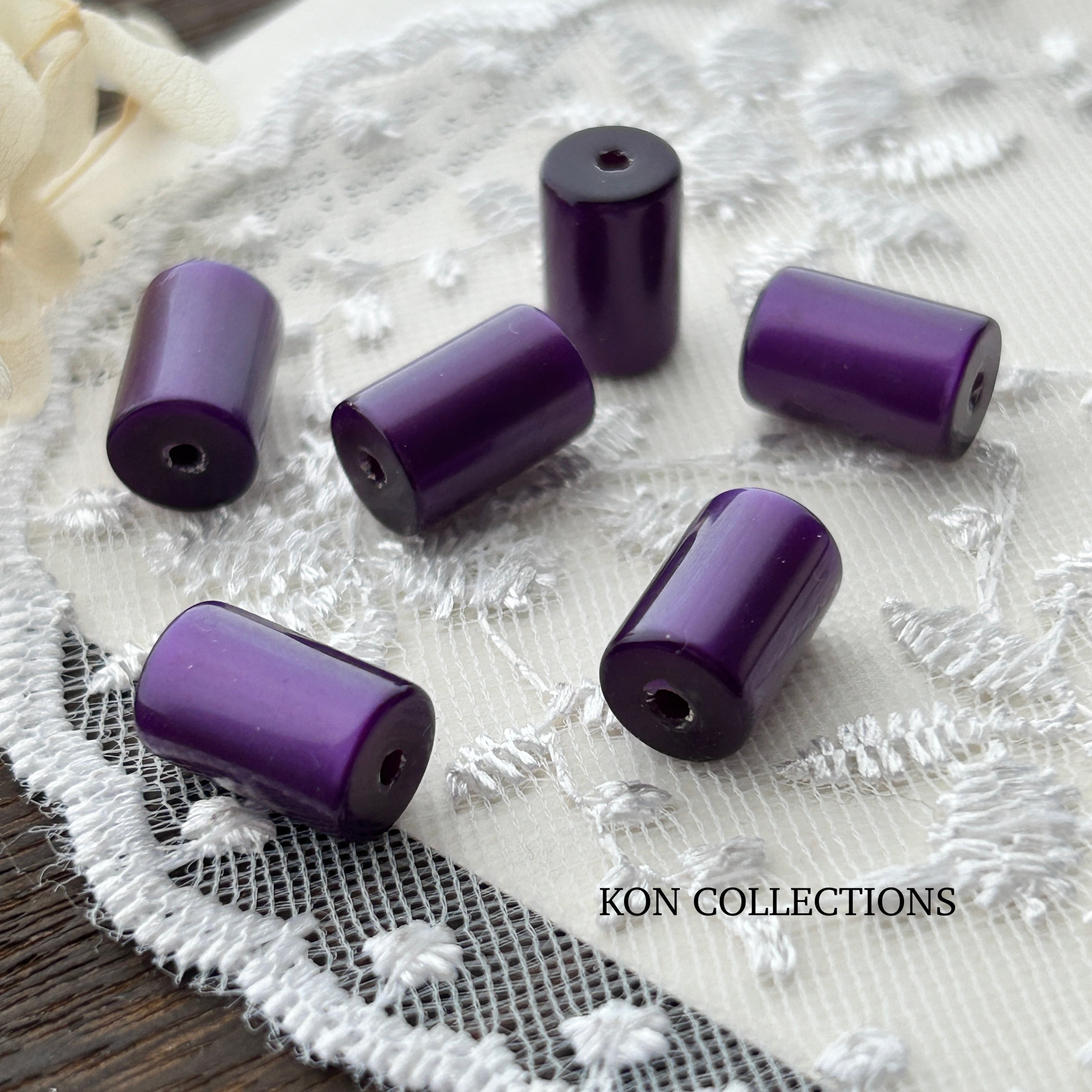 ヴィンテージビーズ2個/パープルムーングロウ×チューブ