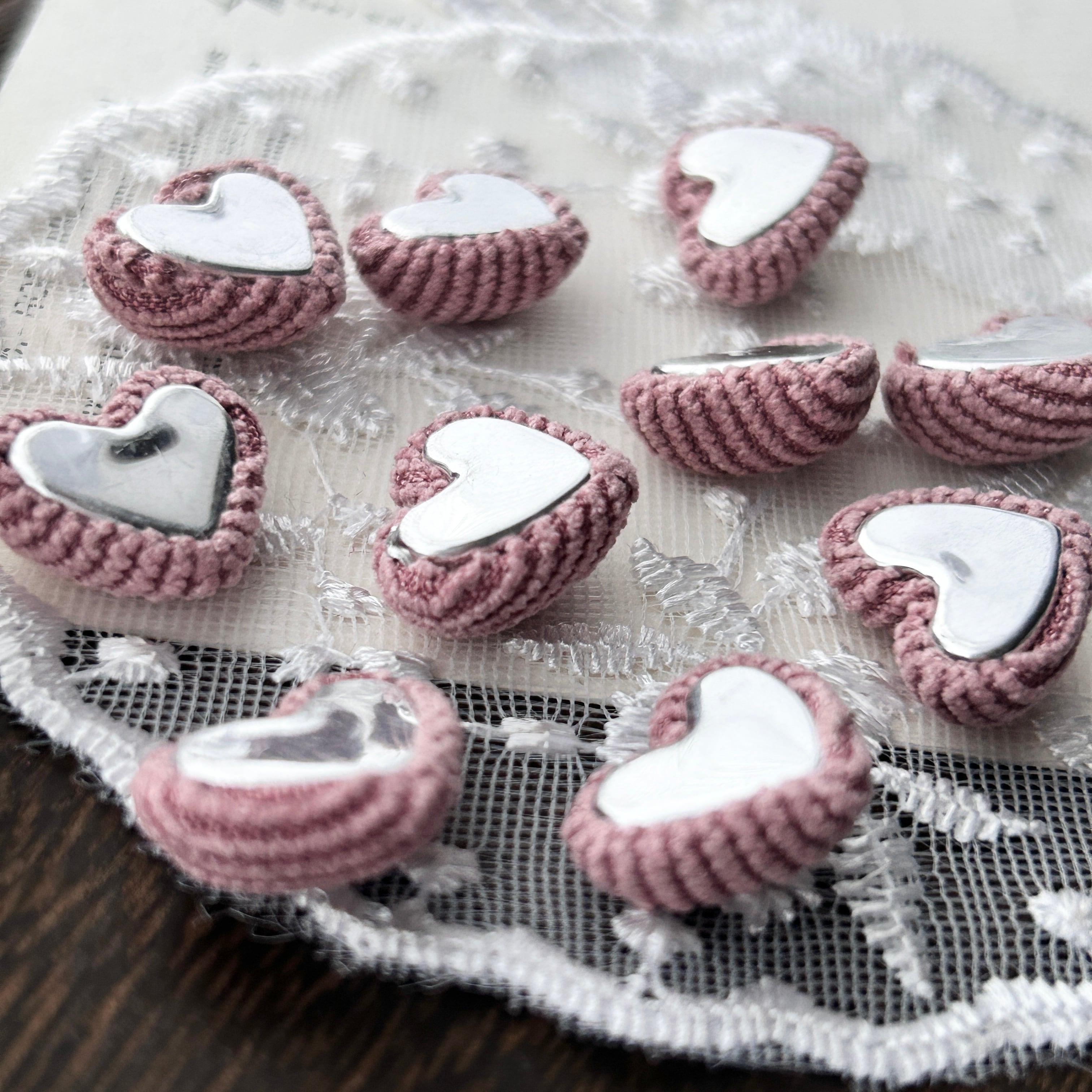 まとめ売り/現代カボション10個/コーデュロイ×くすみピンク×ハート型