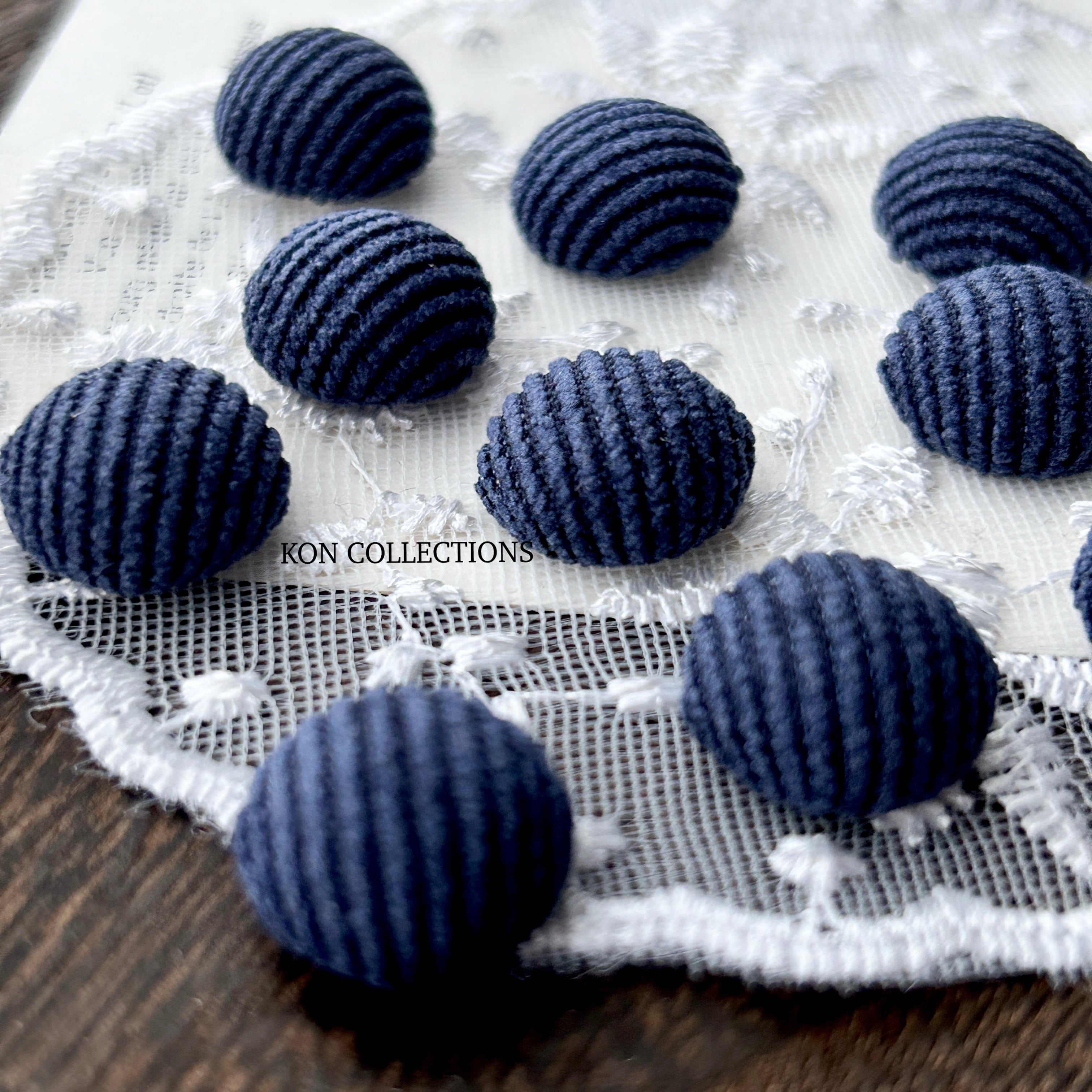 まとめ売り/現代カボション10個/コーデュロイ×ネイビー×ラウンド型