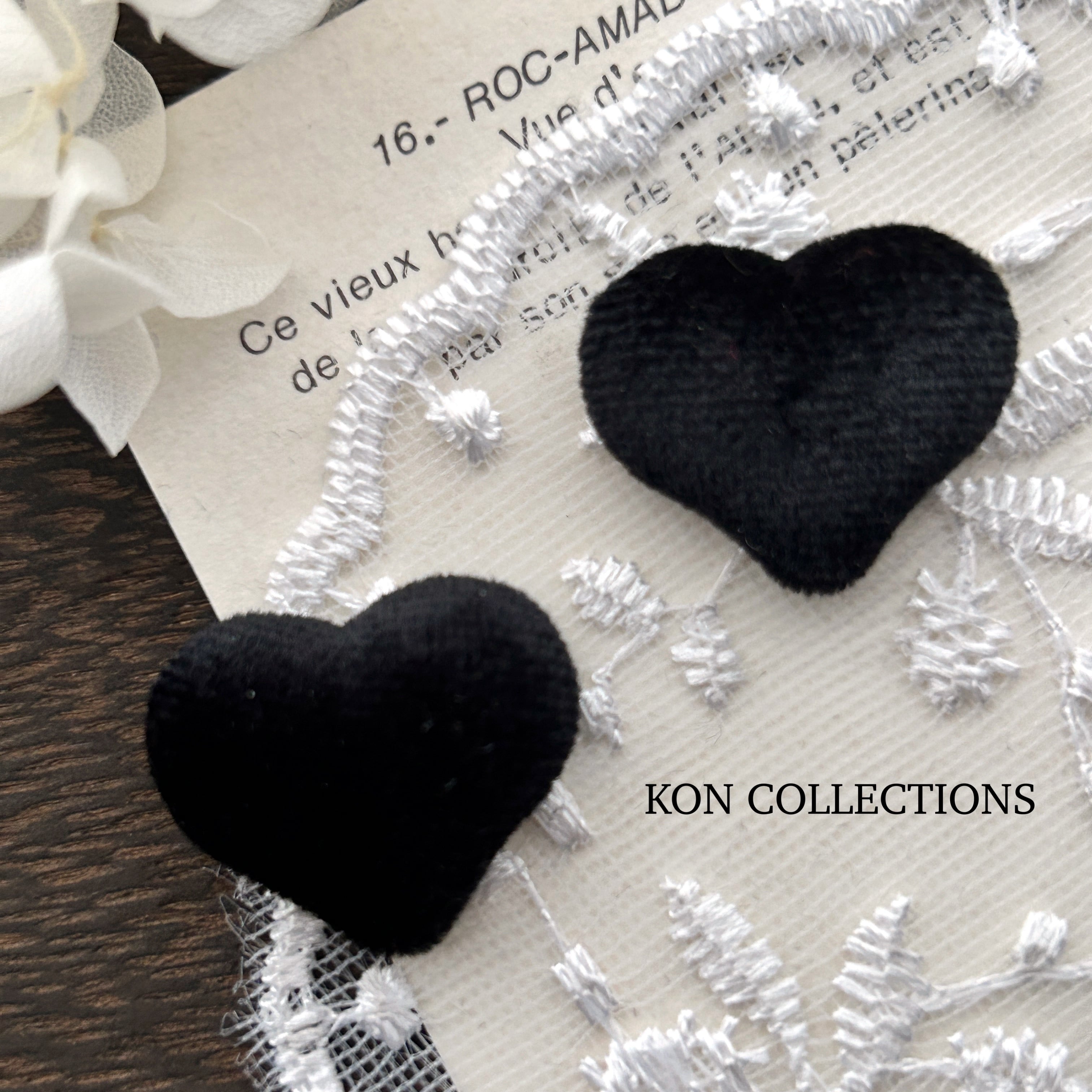 少し大きめサイズ。下がシェイプされていてありそうでないハート型でかわいいです♪手触りのいいベロア生地。穴はありませんので貼り付けてお使いください。裏面のシルバー部分は少しスレ傷あります。