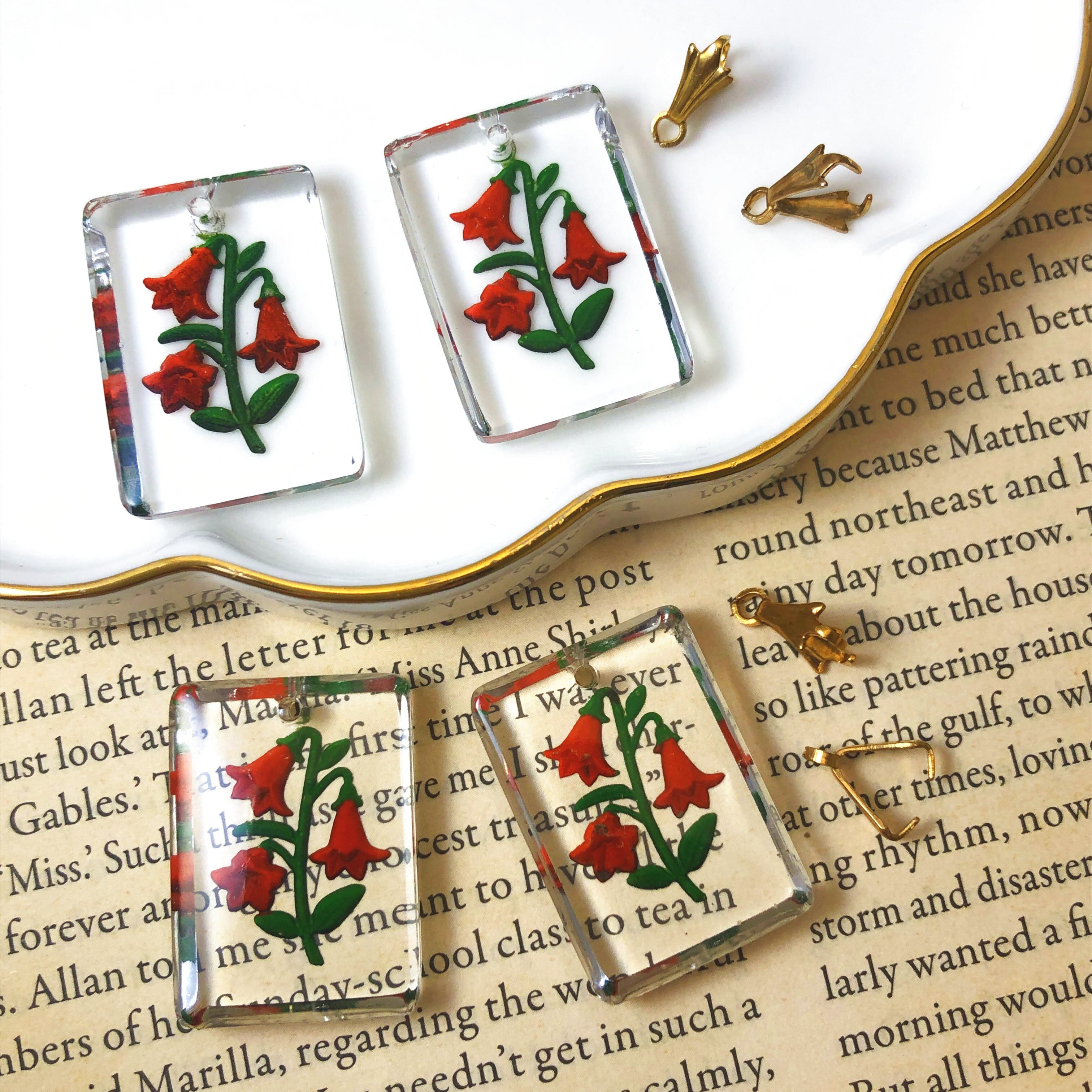 ヴィンテージガラスインタリオペンダントトップ1個/ベルフラワー×長方形