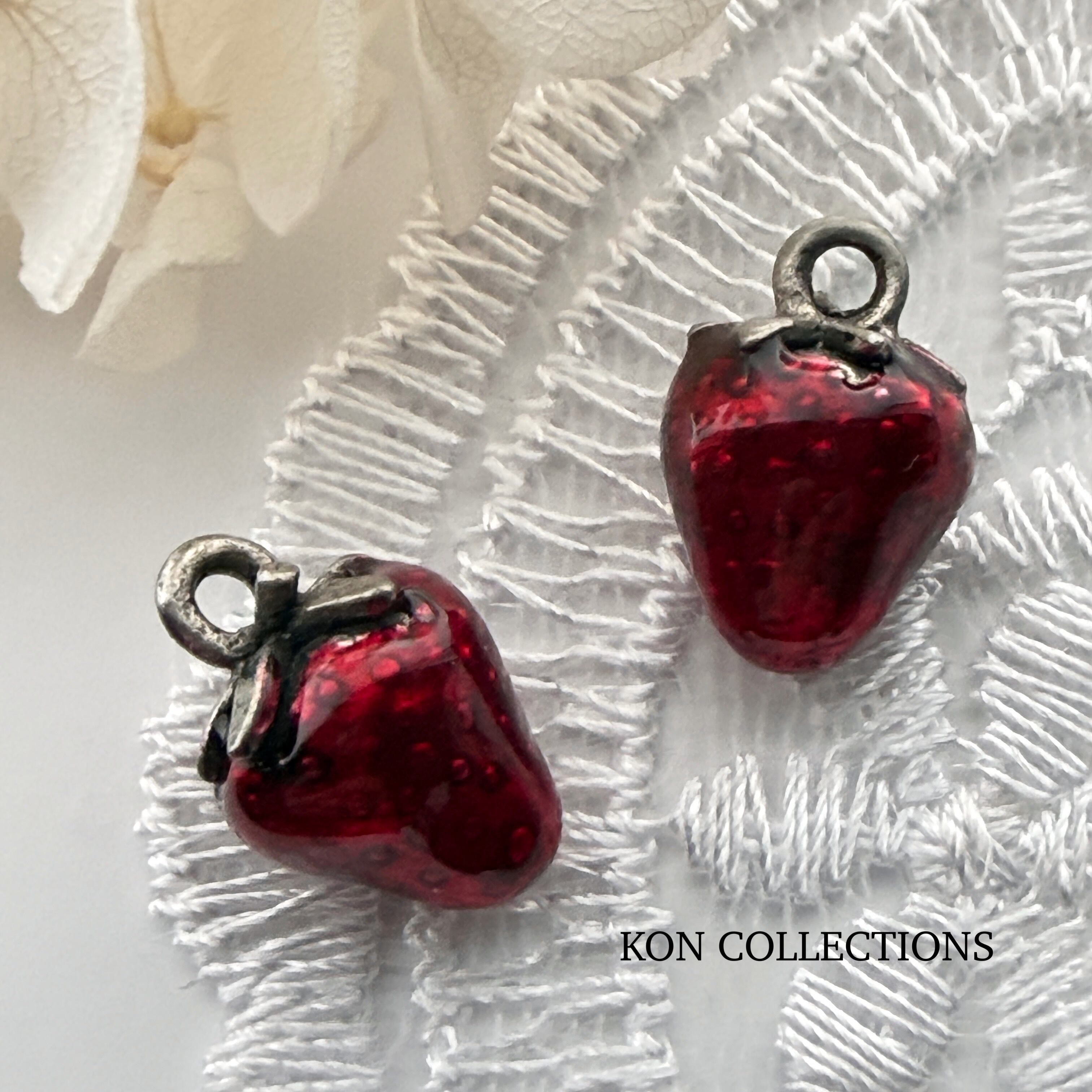 ピューターエポキシチャーム1個/いちご(アンティークシルバー)