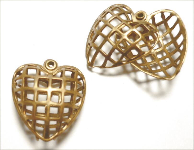 ヴィンテージチャーム1個/立体透かしハート×真鍮