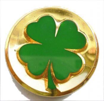 ヴィンテージガラスカボション1個/ラウンド/クローバー×グリーン