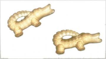 小さな小さなマットガラスのワニ。裏面はゴールドフォイルで経年による劣化や禿がある物もあります。