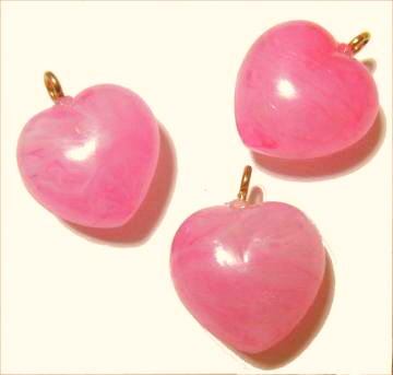 かわいらしいピンクとホワイトのマーブルの立体的なころんとしたハートチャーム。マーブル模様の出方は1個ずつ異なります。金具部分はゴールド色ですが、経年による退色があるものもあります。また、少し曲がってついていたり埋まっていることがありますが使用可能な範囲ですので不良品扱いにはなりません。