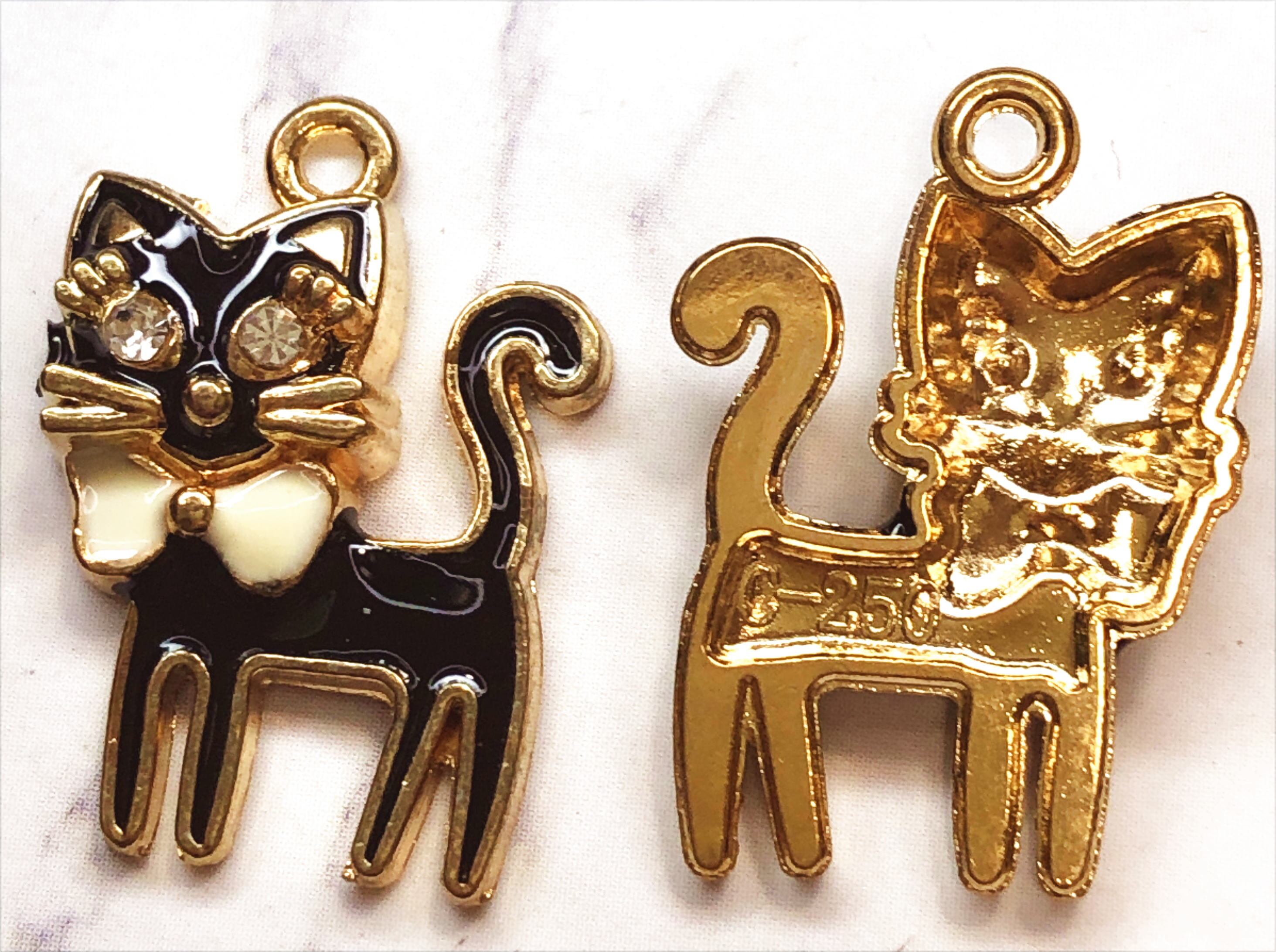 現代メタルチャーム1個/リボン猫×黒×ゴールド