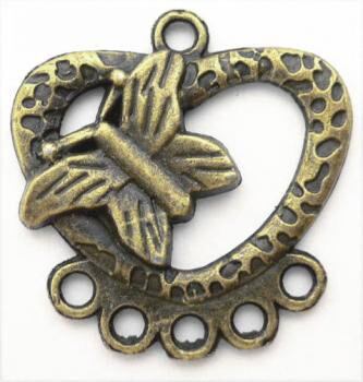現代物/メタルチャーム2個/カン付きハートと蝶×金古美