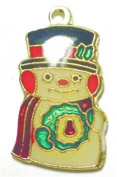 小さめの雪だるまのチャーム。七宝焼きのような感じです。裏面はゴールドプレートで、少し変色があります。