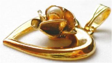 ハートフレームにパールが中心に入ったお花モチーフがついています。バチカン付きなのでペンダントトップにも♪