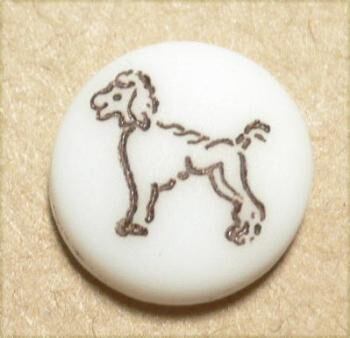 手書きのような犬の絵♪ペイントの濃さは1個ずつ少し異なります。裏面はフラットで中心部分が若干薄く削れたようになっていますが、製造過程によるものです。裏面縁に細かい欠けがある場合があります。