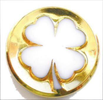 ヴィンテージガラスカボション1個/ラウンド/クローバー×ホワイト