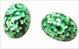 ヴィンテージガラスカボション1個/17x12/グリーンマイカ