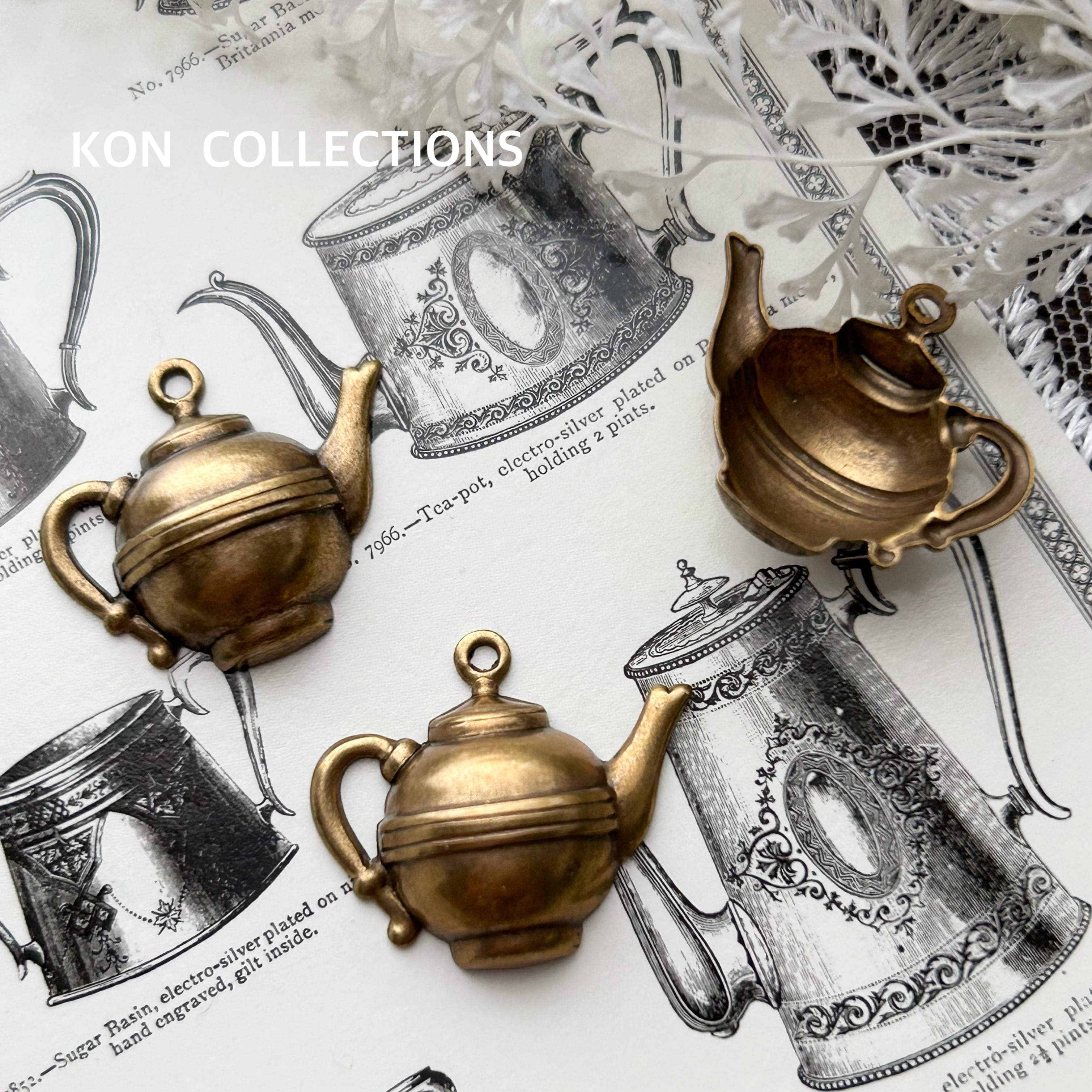 ヴィンテージチャーム2個/ティーポット×アンティークゴールド