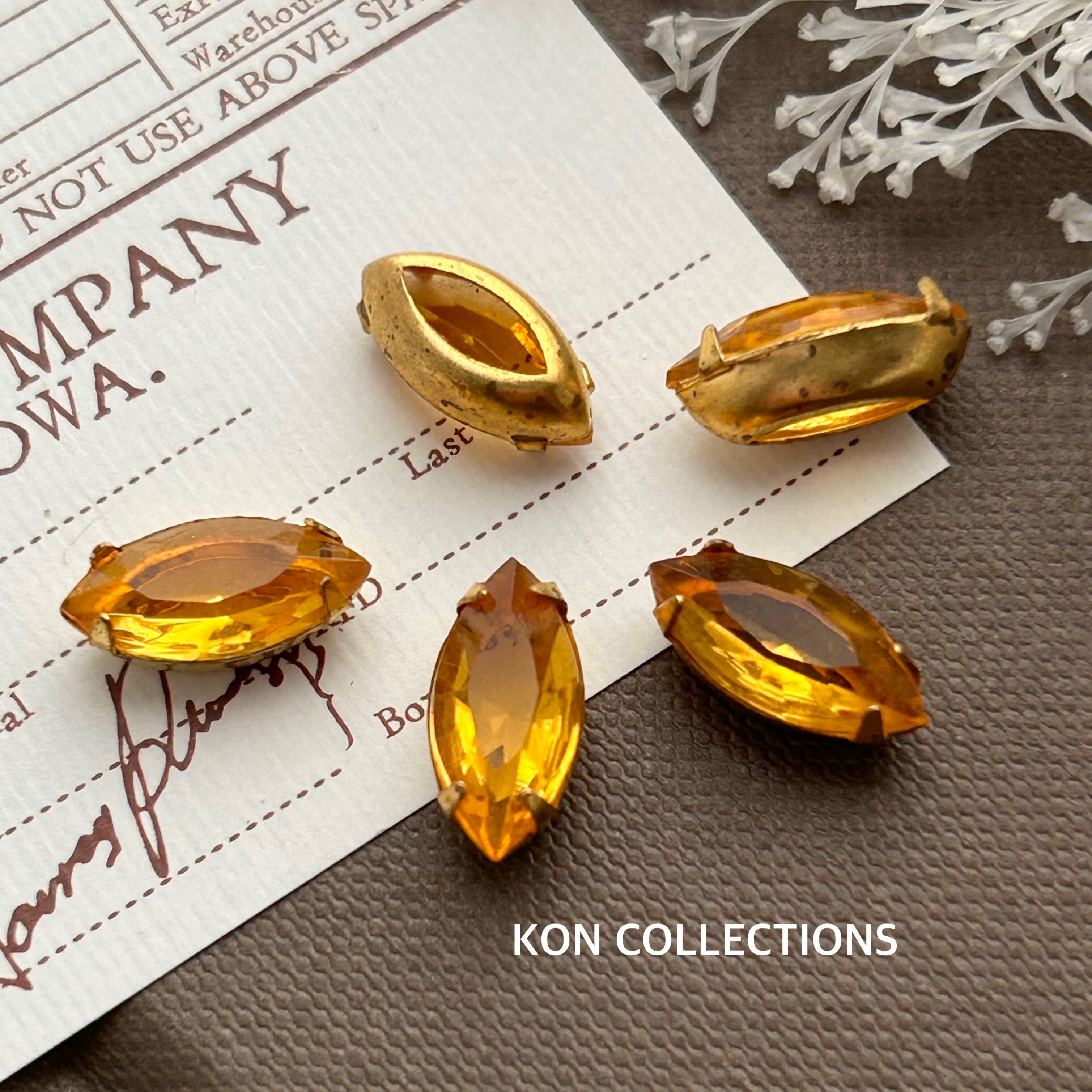 スワロフスキーストーンがセットされたパーツ。バックホイルはないタイプのため落ち着いた雰囲気です。セットされたブラス製パーツは経年よる変色やシミがありますので、ご了承の上ご注文ください。セットされている台座ごと透かしパーツなどに貼り付けたり、ボタンと組み合わせてピアスなどにも♪