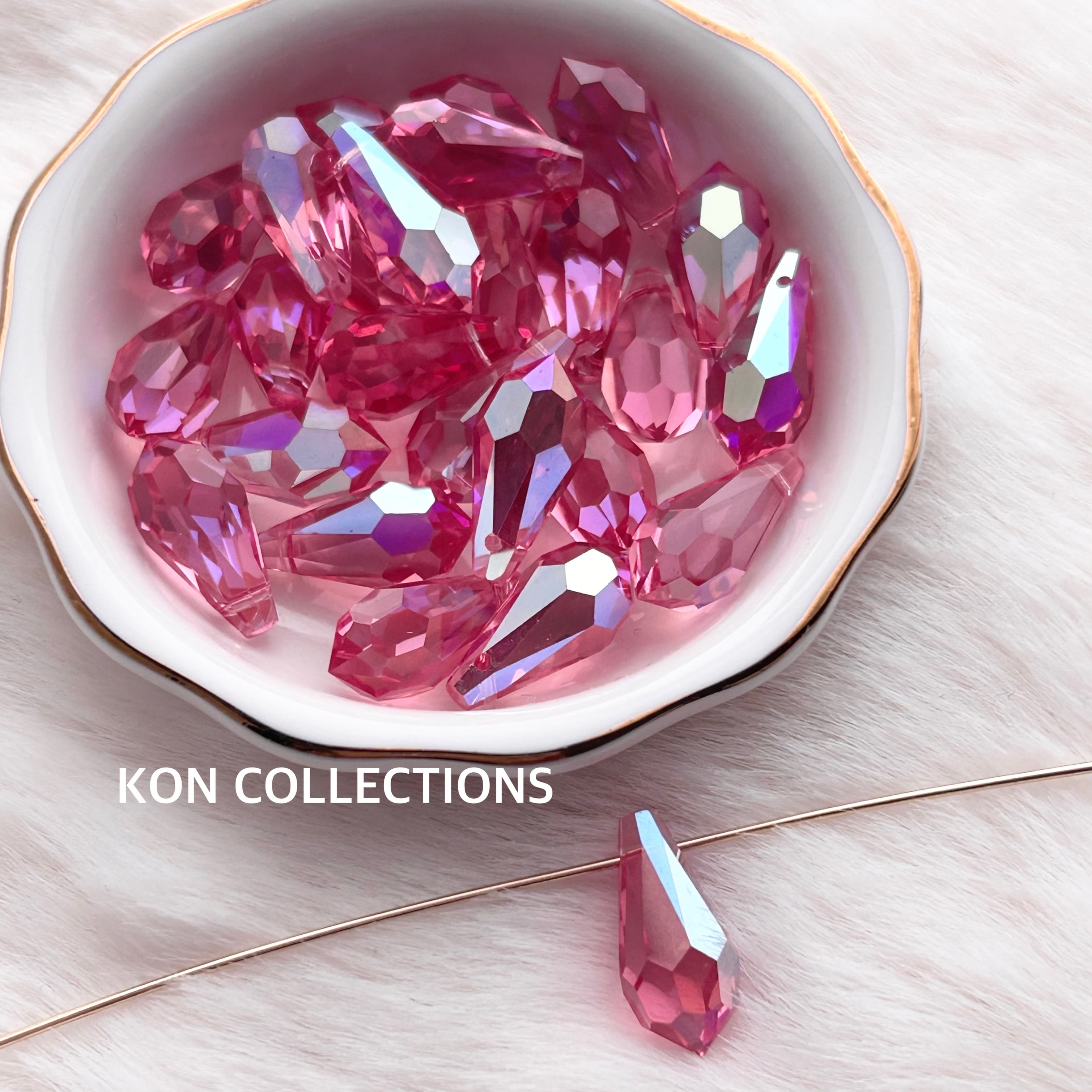 現在は製造されていないスワロフスキーのガラスビーズです。オーロラ加工の雫型。トップホールタイプ。