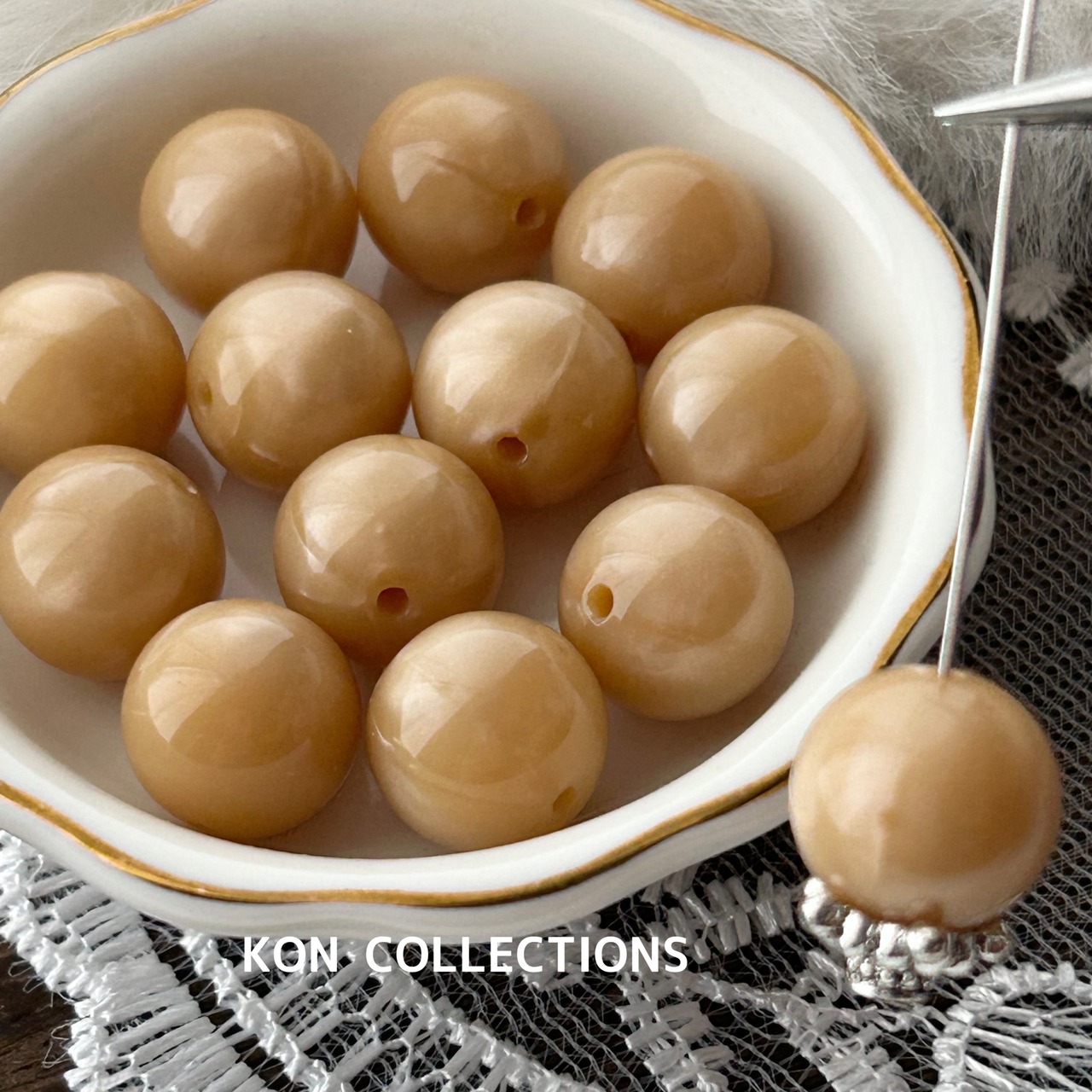 ヴィンテージビーズ4個/シルキーキャラメル×ラウンド11mm