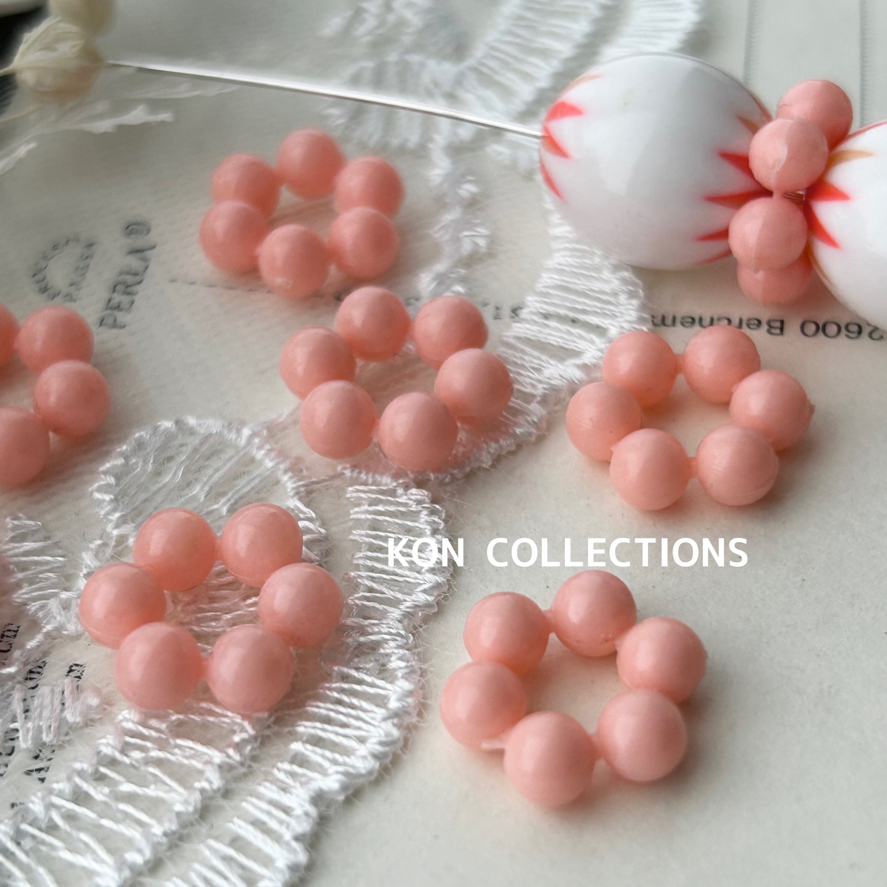 少しピーチっぽいピンク色でキッチュな雰囲気。画像のようにスペーサーのように間に挟んだり、丸カンでぶら下げてチャームのようにも♪(コネクターとして使うと重みで切れる可能性があります)