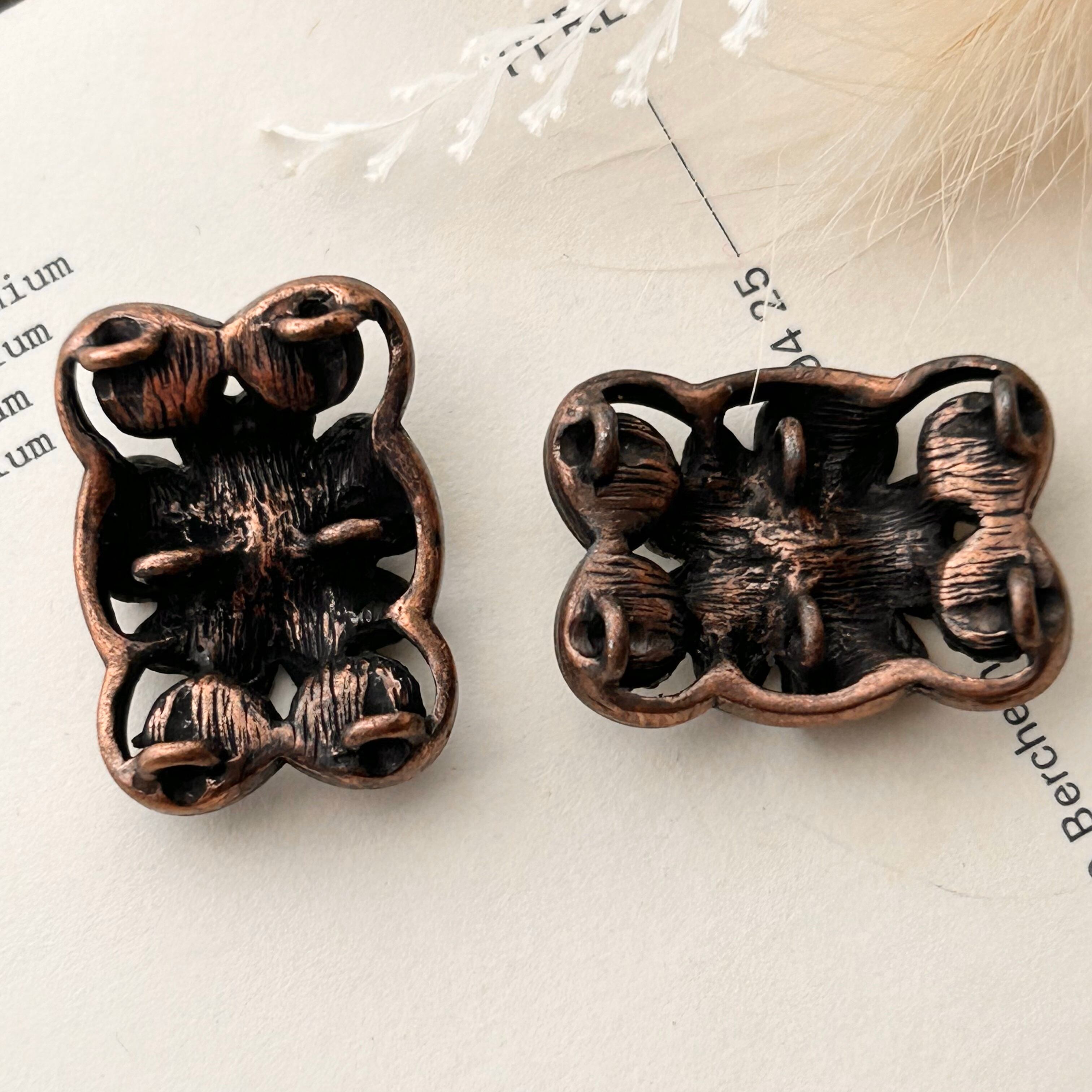四隅のストーンはおそらくアクリルですが、お花の真ん中はスワロABストーンで輝いています。真ん中に向かって少しカーブしていますので、2ホールを利用して横向きにブレスレットにお使いいただくのがおすすめです♪