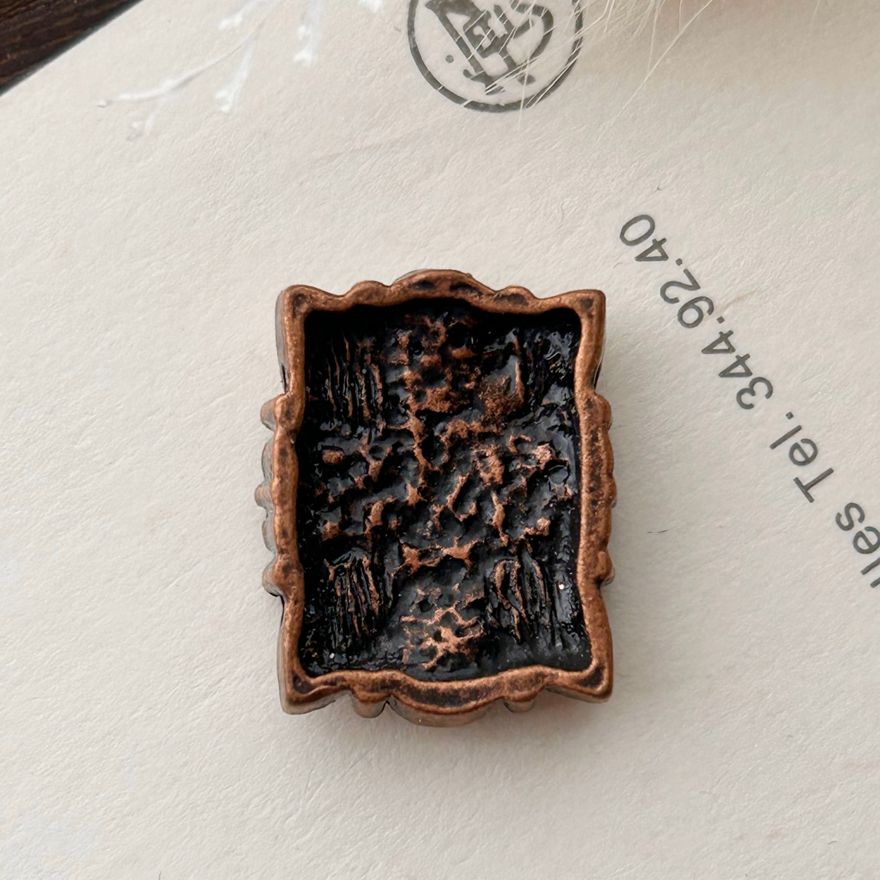 現代メタル2ホールビーズ1個/黄土色系エナメル×銅古美
