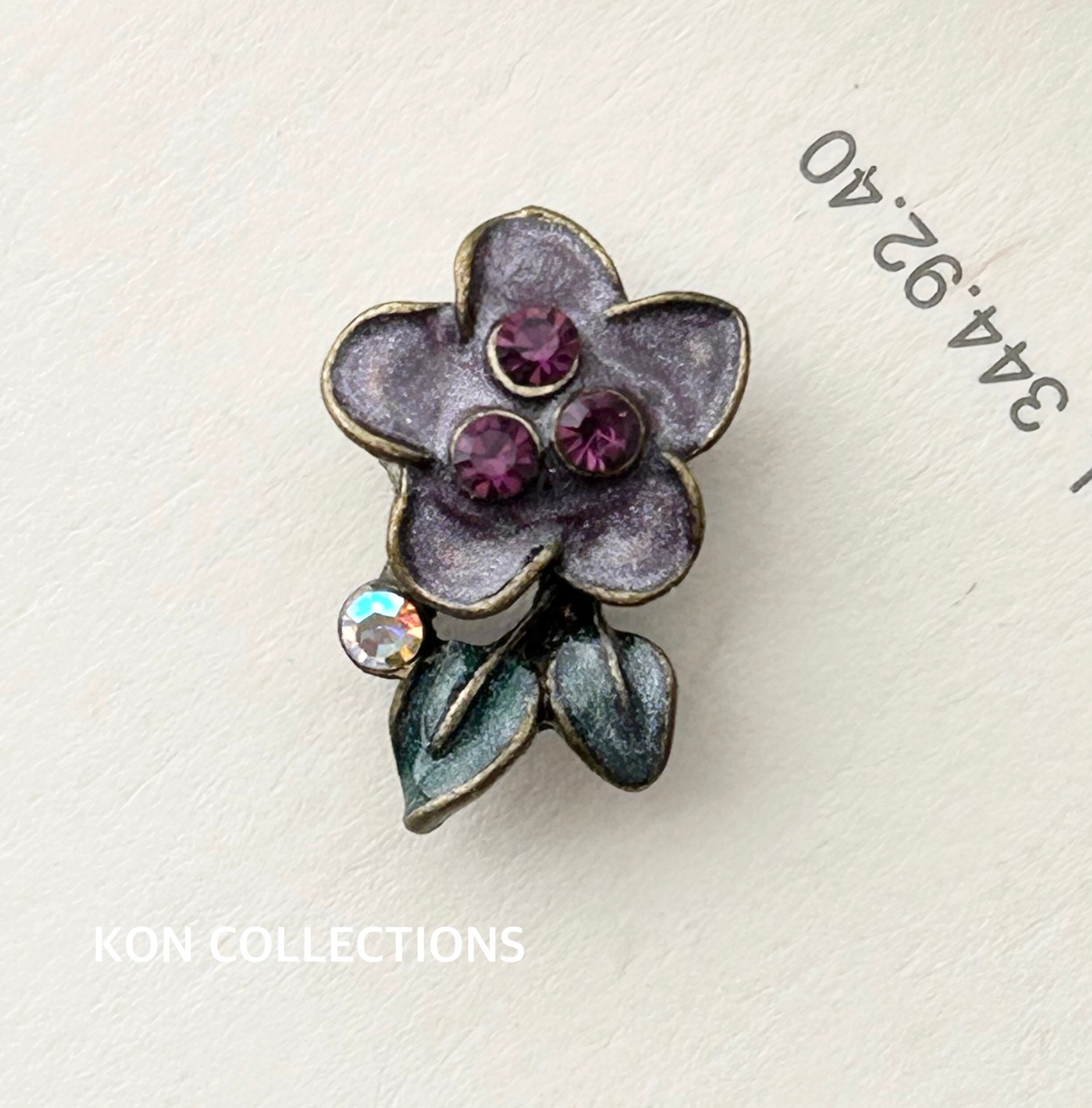現代メタル2ホールビーズ1個/パープルフラワー×金古美
