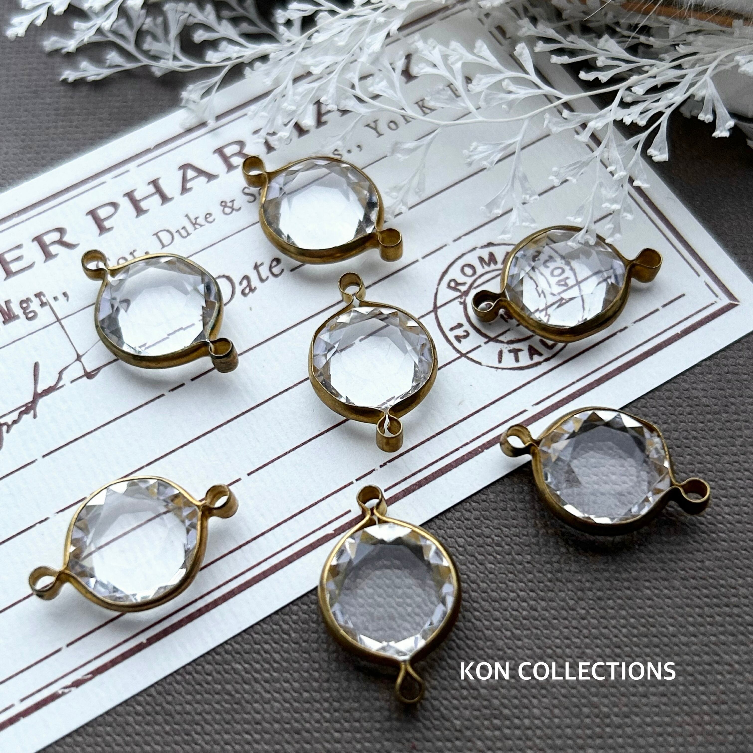 ヴィンテージコネクタービーズ2個/クリア×ブラスゴールド