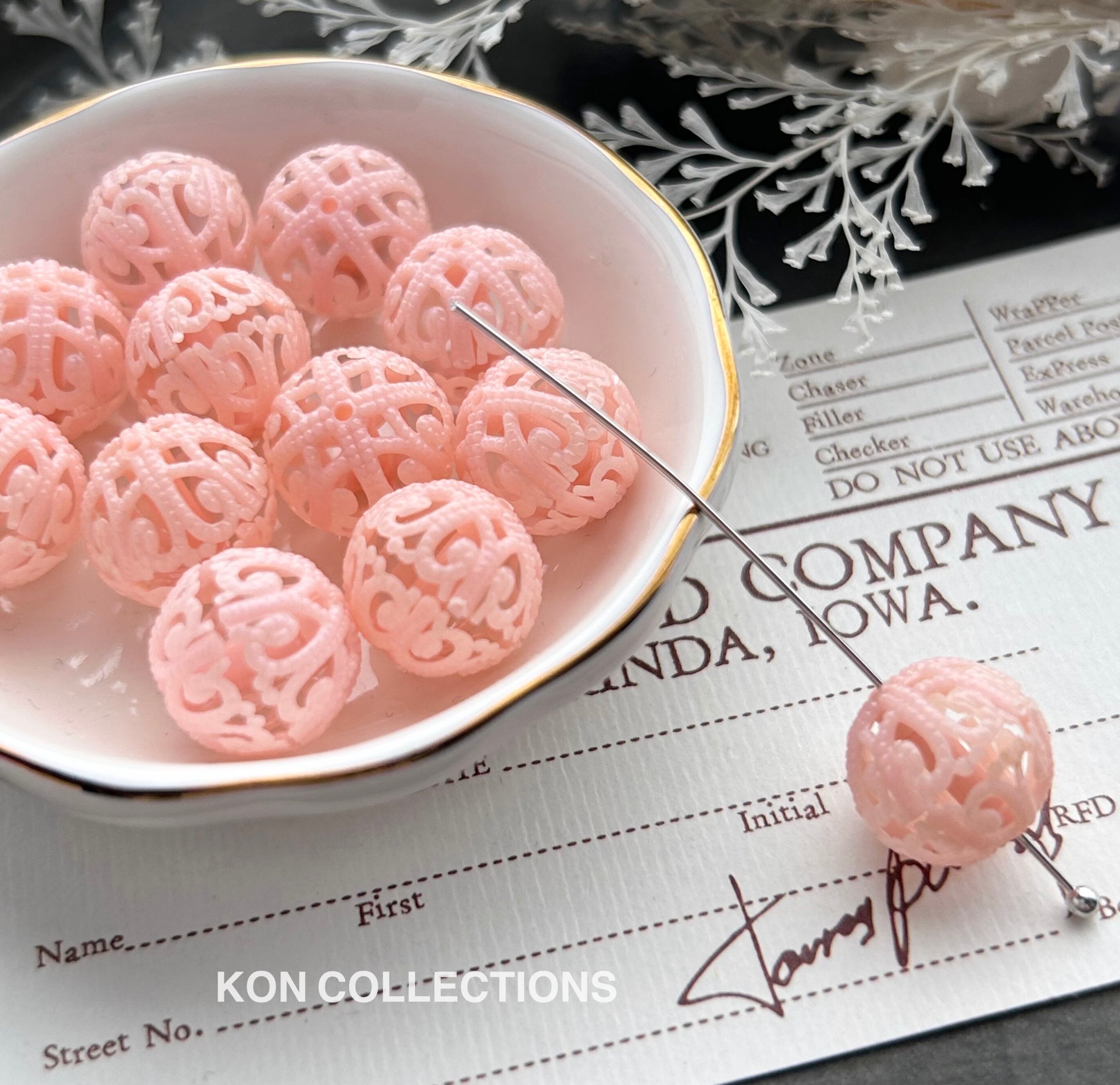 繊細な透かし模様のキャップが合わさってラウンド形になったビーズ。とても軽いです